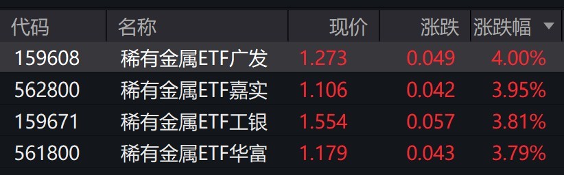 受盤面影響,稀有金屬相關(guān)ETF漲約4%。