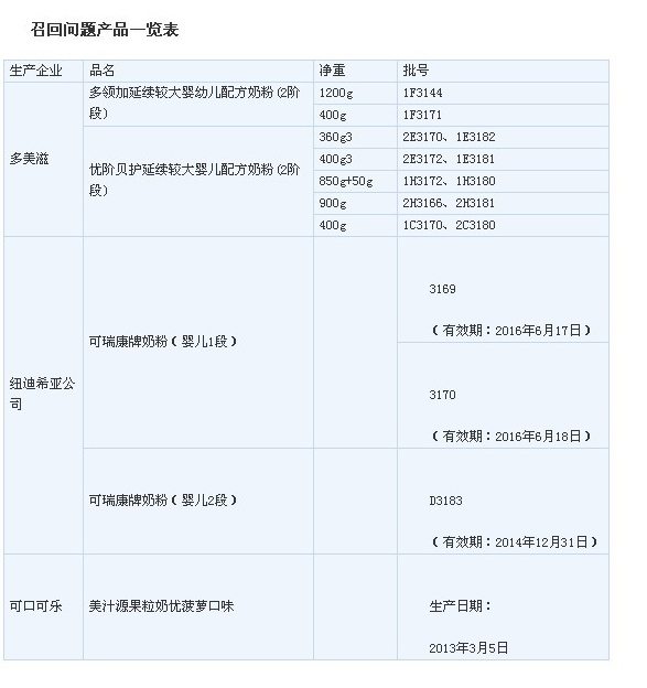 ·涉及產品:出廠批號分別為3169、3170的“可瑞康”1段(供0-6月嬰兒食用)和批號為D3183的“可瑞康”金裝版2段嬰兒配方奶粉(供6-12個月嬰兒食用)