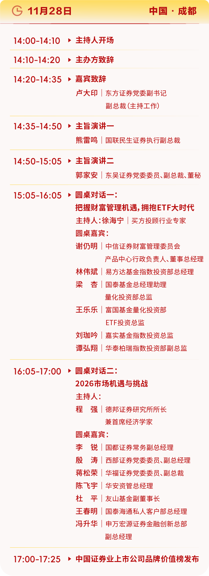 當(dāng)前,在“穩(wěn)質(zhì)強(qiáng)基”的發(fā)展基調(diào)下,資本市場(chǎng)既注重筑牢制度根基、提升上市公司質(zhì)量,又積極為科技創(chuàng)新企業(yè)開(kāi)辟成長(zhǎng)通道。2025資本市場(chǎng)高質(zhì)量發(fā)展論壇以“穩(wěn)質(zhì)強(qiáng)基,向新而行”為主題,邀請(qǐng)行業(yè)大咖,金融專(zhuān)家等共聚成都,共話資本市場(chǎng)新機(jī)遇齊繪科創(chuàng)發(fā)展新藍(lán)圖!